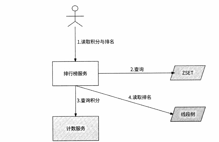 比如排行榜可以展示前 10000名用户的列表,对于10000名以后的用户,并不展示其排名的前面、后面都有哪些 人,只告诉其名次是多少即可。所以,实现超长排行榜的终极解决方案是ZSET精确排名 与线段树粗估排名的结合,前者负责维护前10000名用户的详细排名和排行榜列表,后者负责展示每个用户,尤其是10000名以后的用户的粗估排名。不过,由于线段树无法存储 用户积分,所以需要使用额外的系统来做这件事情,比如计数服务。