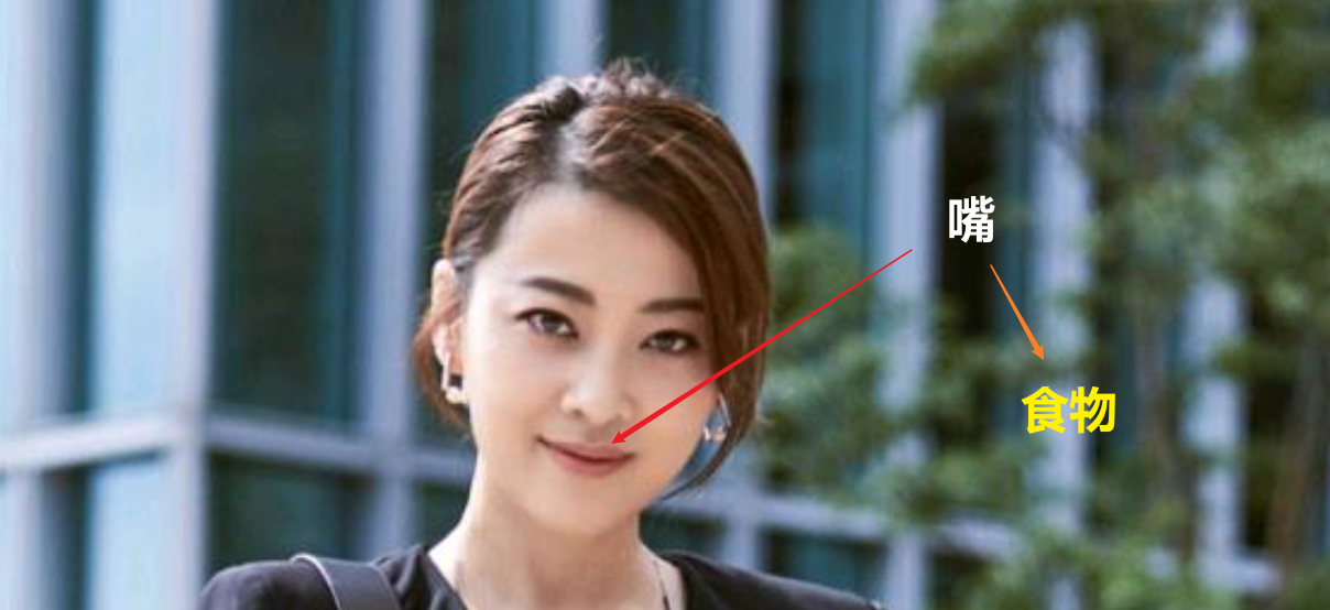 又比如,我们看到一个人的嘴的时候,我们可以联想到食物这个类别的单词。