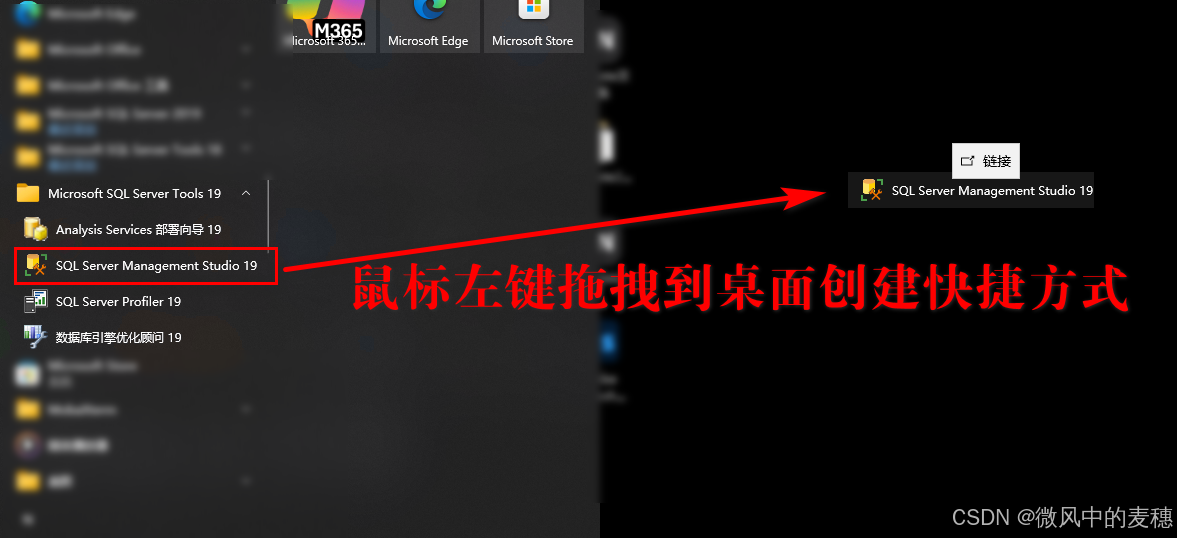 从开始菜单找到SQL Server Management Studio 18,创建桌面快捷方式