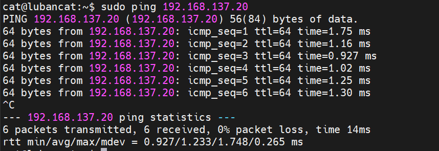 再测试一下板子能否ping通虚拟机,如下图,也成功了: