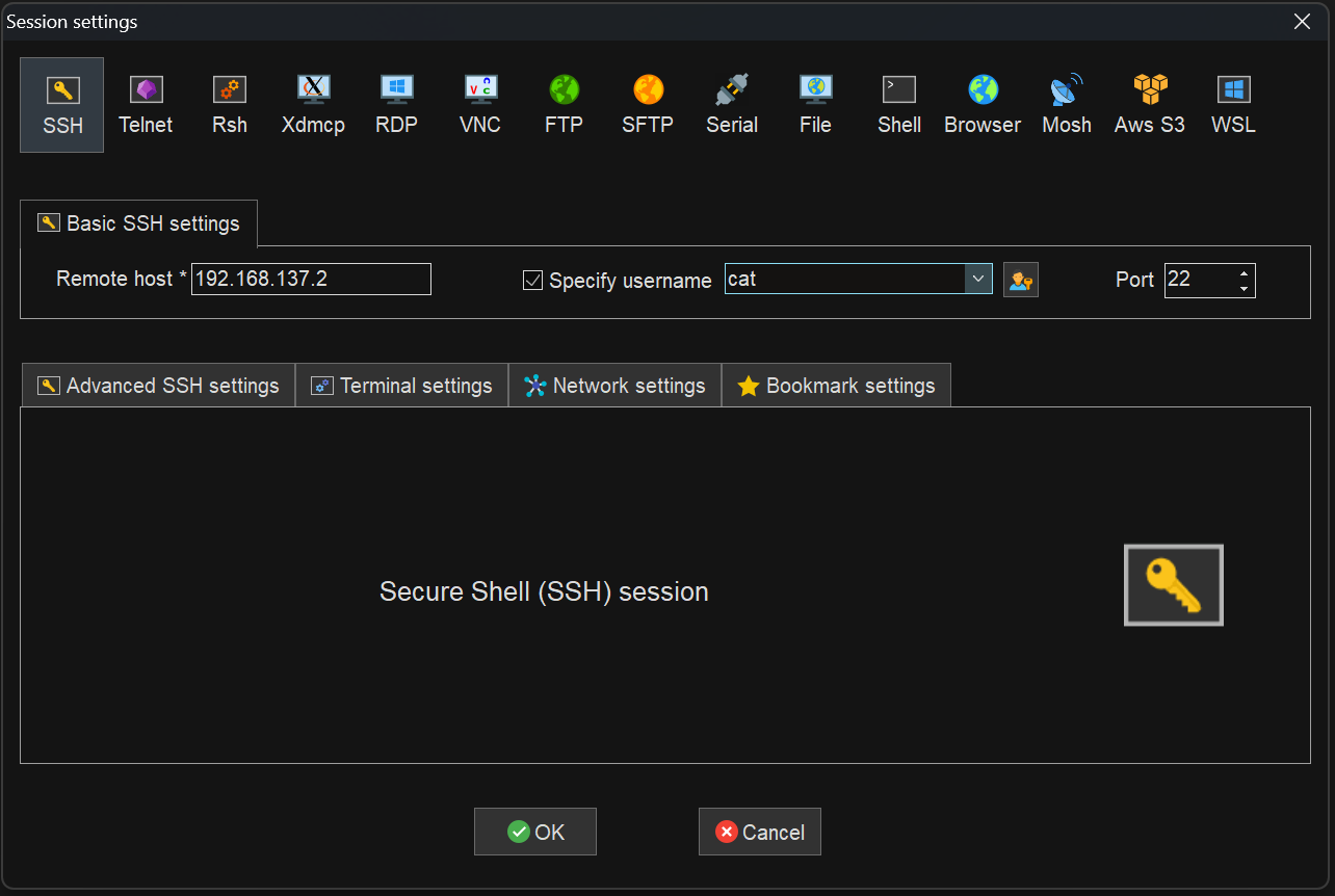 输入我们刚才配置的ip,这里使用root登陆可能不会成功,建议使用普通用户进行登陆。