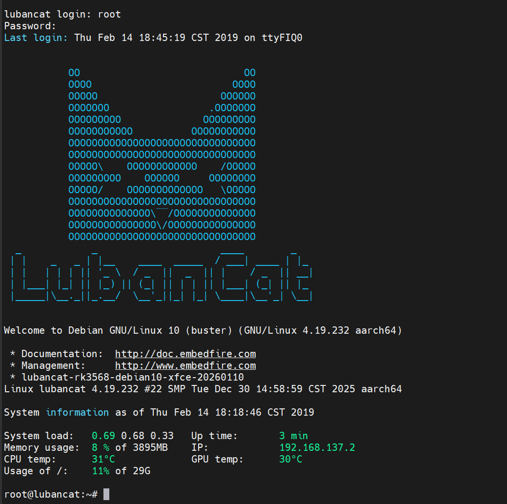 对于我使用的鲁班猫2,用户名和密码如下:
