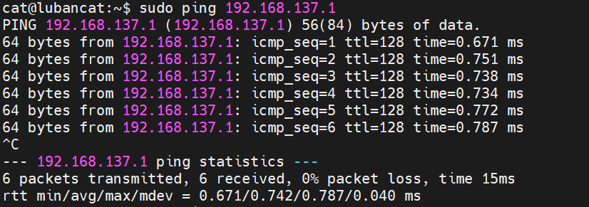 我们先测试一下板子能否ping通主机,如下图,成功了: