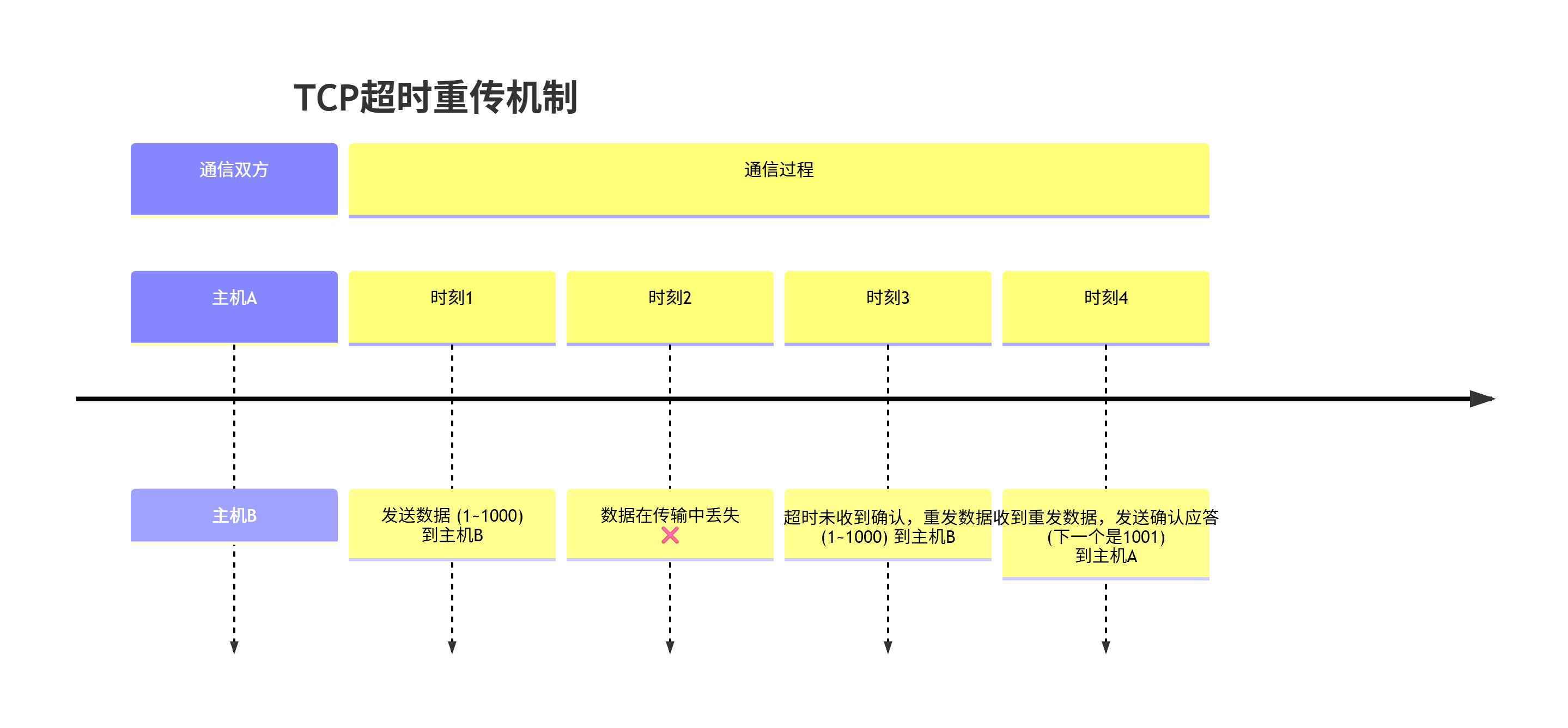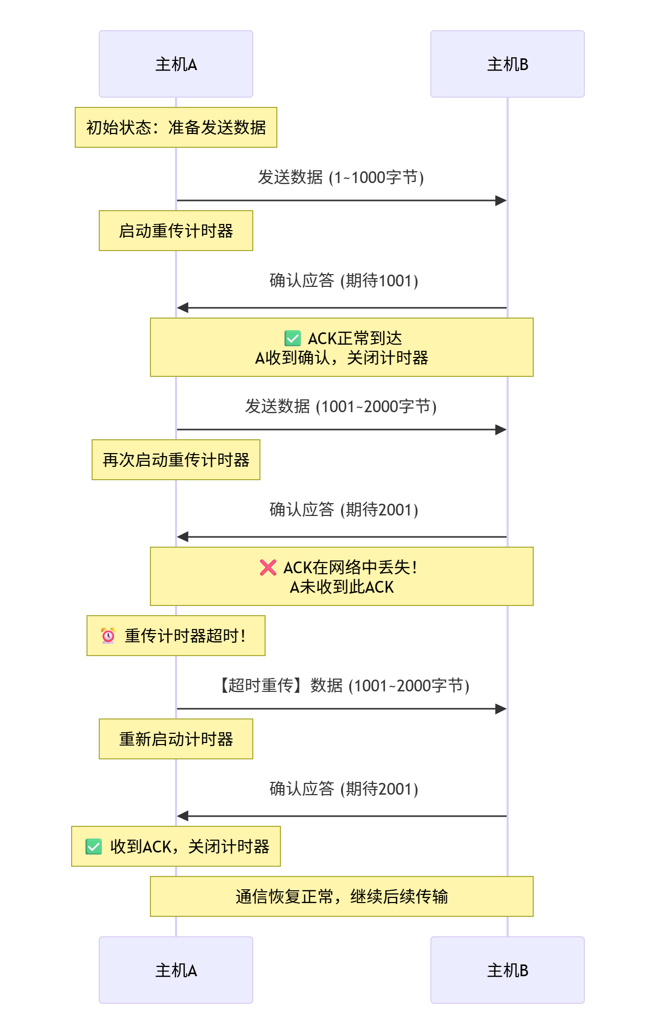 主机A发送数据给B之后,可能因为网络拥堵等原因,数据无法到达主机B;