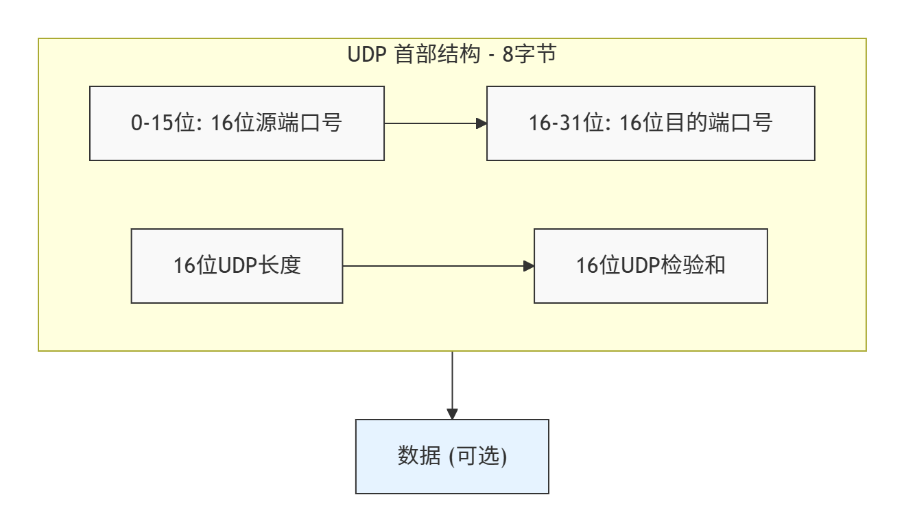 16位UDP长度,表示整个数据报(UDP首部+UDP数据)的最大长度,也就是说,接收方分离报头和数据,是先读取固定长度8字节的报头,检查检验和,检验和没出错,再提取里面的16位udp长度,这个长度减去8字节,就是有效载荷的长度,然后传输层再读取目的端口,决定将数据发给应用层的哪个进程。