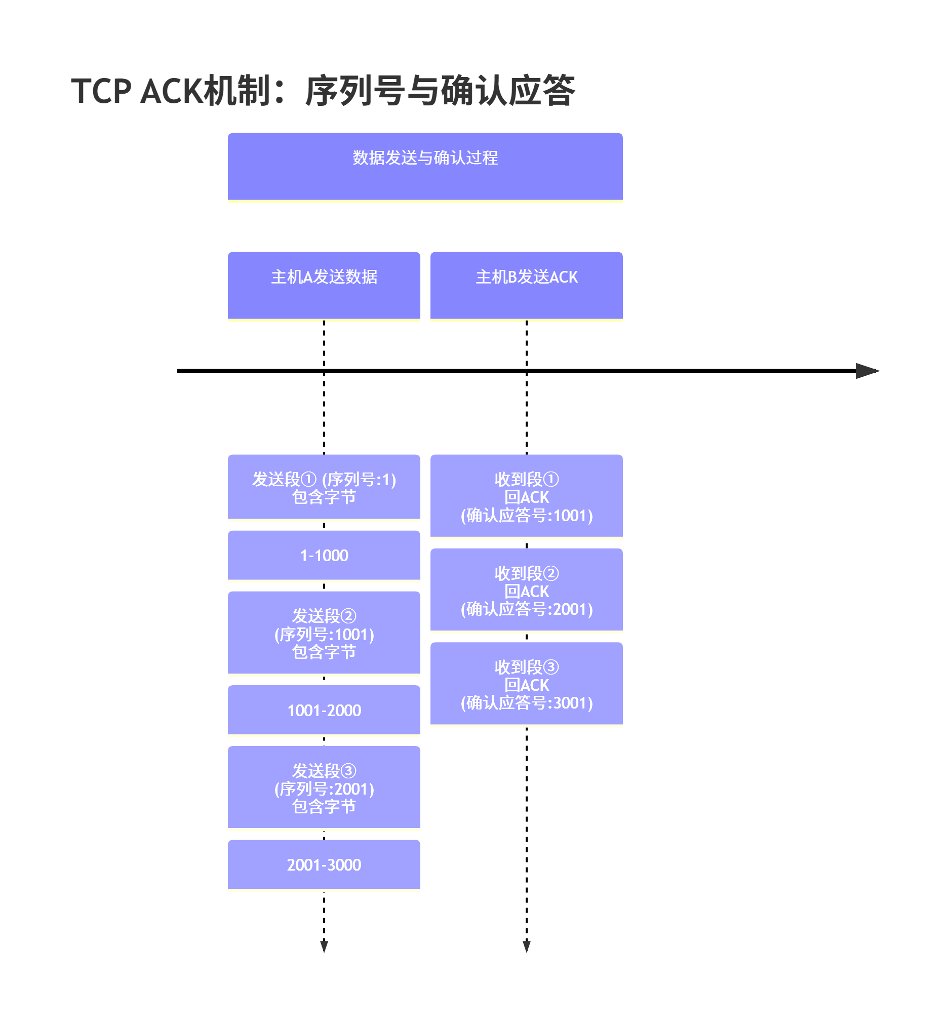 每一个ACK都带有对应的确认序列号,意思是告诉发送者,我已经收到了哪些数据;下一次你从哪里开始发.
