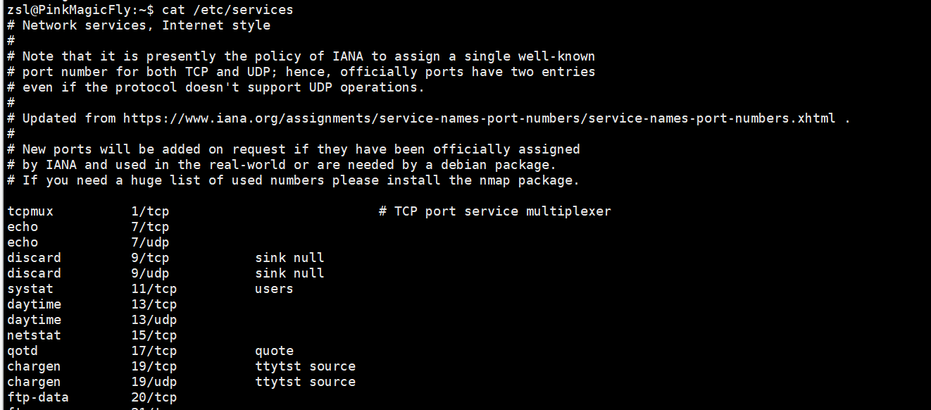 bashcat /etc/services我们自己写一个程序使用端口号时,要避开这些知名端口号