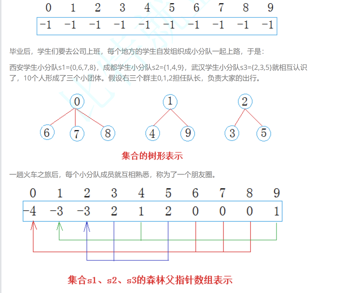 1、一个位置值是负数,那他就是树的根,这个负数绝对值就是这颗树数据个数。