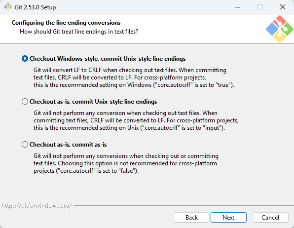 选第二个,这样可以在 Windows 自带的命令提示符和 powserShell 中直接使用 git 命令: