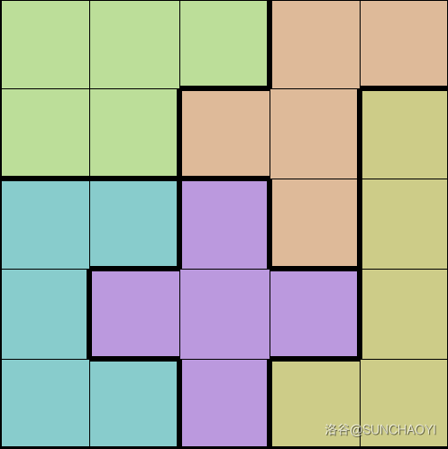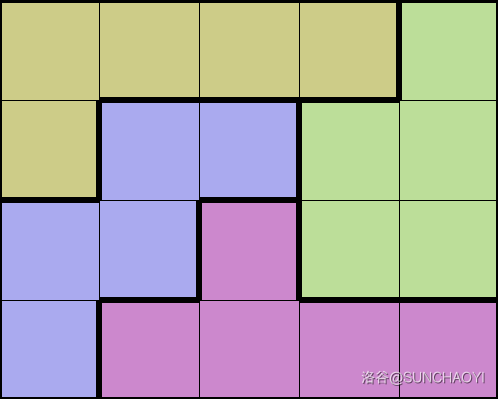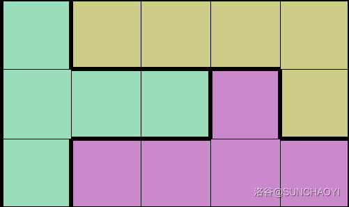 直接基于 3×53 \times 53×5 的块构造即可,每行复制 m5\frac{m}{5}5m 遍即可完成列扩展。但是都以 T 形积木块起始,会导致出现连通,因此在行的扩展时需要注意翻转。