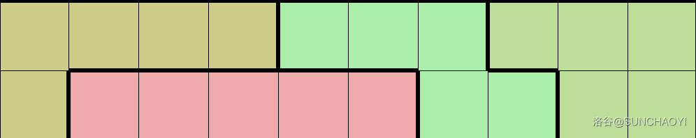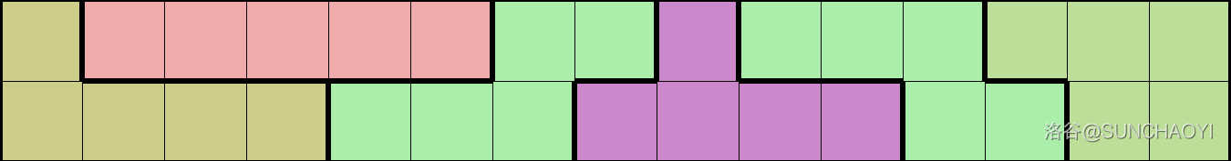 前面的部分与 n mod 3=0n \bmod 3 = 0nmod3=0 情况相同,在最后一个 4×54 \times 54×5 的块进行如下构造即可,每行复制 m5\frac{m}{5}5m 遍即可完成列扩展。