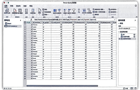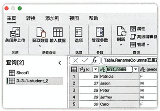 - 使用相同的方法(【新建源】→【文本/CSV】),将存储学生信息的CSV文件导入Power Query编辑器(见图3-26)。此时,编辑器左侧的"查询"窗格中将出现两个独立的查询。