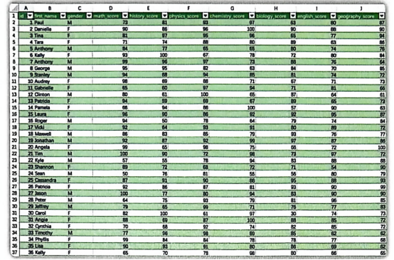 id,firstname,gender,physics_score。其中,gender字段用"F"和"M"表示。