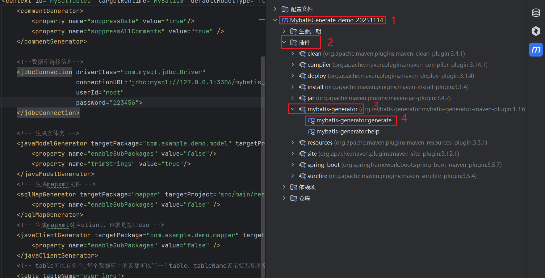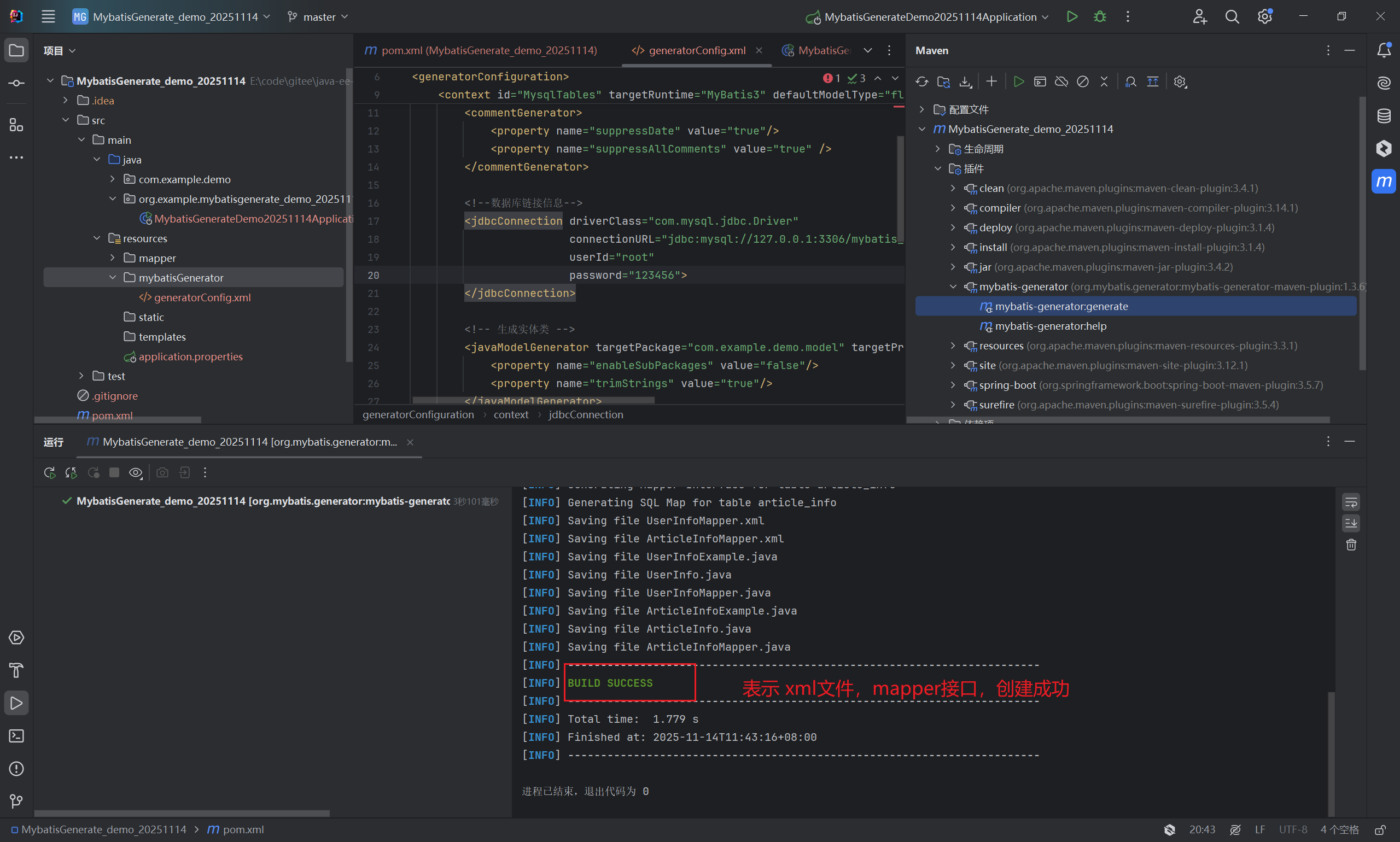 - [1.2 添加generatorConfig.xml并修改](#1.2 添加generatorConfig.xml并修改)