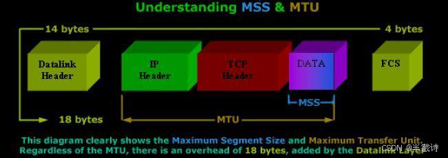- MSS:TCP的最大报文段长度,只指TCP数据部分