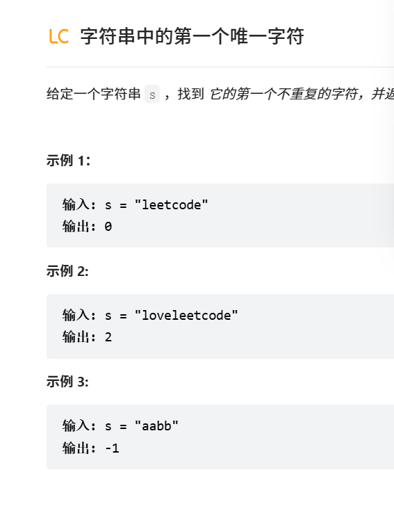 // 给定一个字符串 s ,找到 它的第一个不重复的字符,并返回它的索引 。如果不存在,则返回 -1