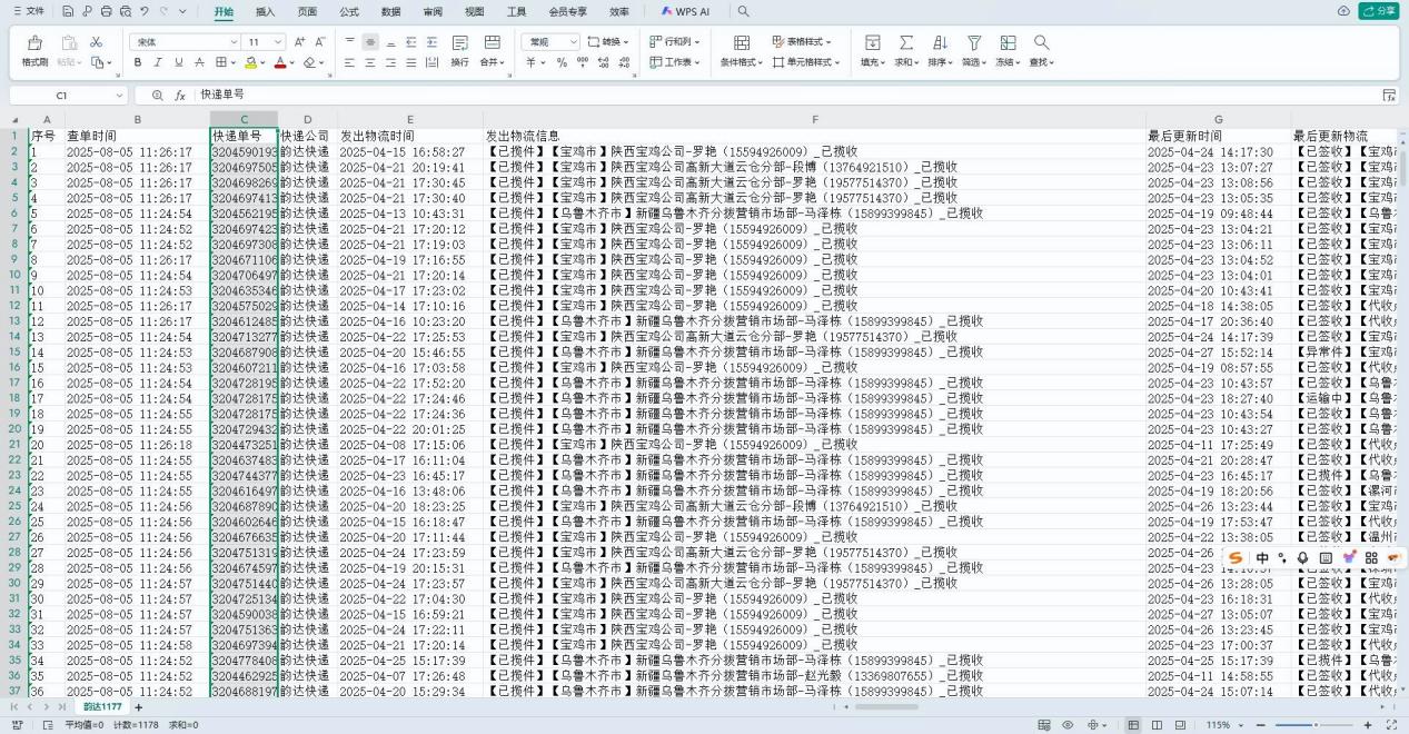 导出的物流报表可直接适配阿里系平台的对账需求,操作逻辑简单,新手容易上手。但批量抓取存在明显限制,单次最多抓取200单,大促单量暴涨时期需分多次操作;对非阿里系合作快递公司的覆盖不足,部分小众快递公司和国际快递单号无法抓取,需手动跳转至对应官网操作,多渠道订单场景的适配性不足。