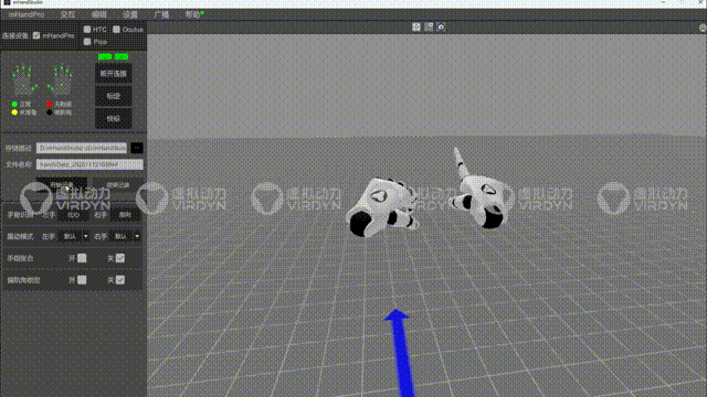 -提供动捕控制面板:可灵活调节手指张合幅度、震动反馈模式