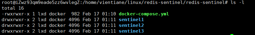 首先创建一个目录,里面用来存放redis数据节点和哨兵节点的目录,在每一个目录里存放一个docker-compose.yml文件。