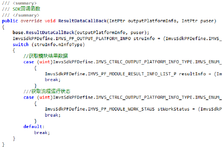采用的是IMVS_PF_RegisterResultCallBack_P_CS()回调,详细内容见3.X二次开发手册。回调的相关信息如下: