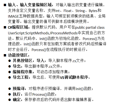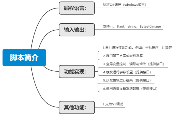 1.在VM中,脚本作为一个模块在VM流程中存在,使用C#编程,可在VS进行代码的编写、调试。