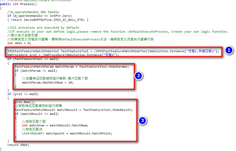 IMVSFastFeatureMatchModuTool fastFeatureTool = (IMVSFastFeatureMatchModuTool)VmSolution.Instance["流程1.快速匹配1"];