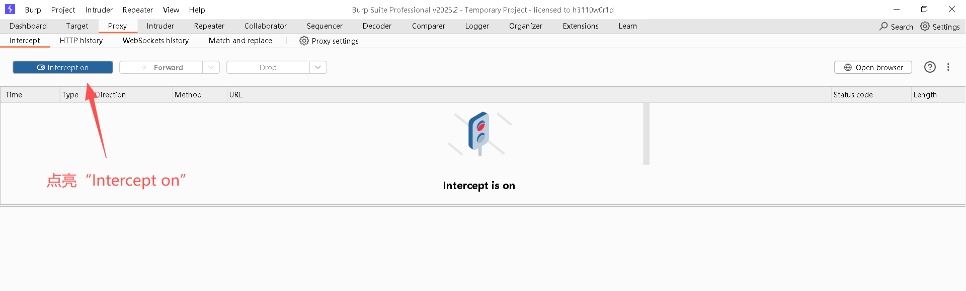 Step7:关闭BurpSuite中的"intercept on"