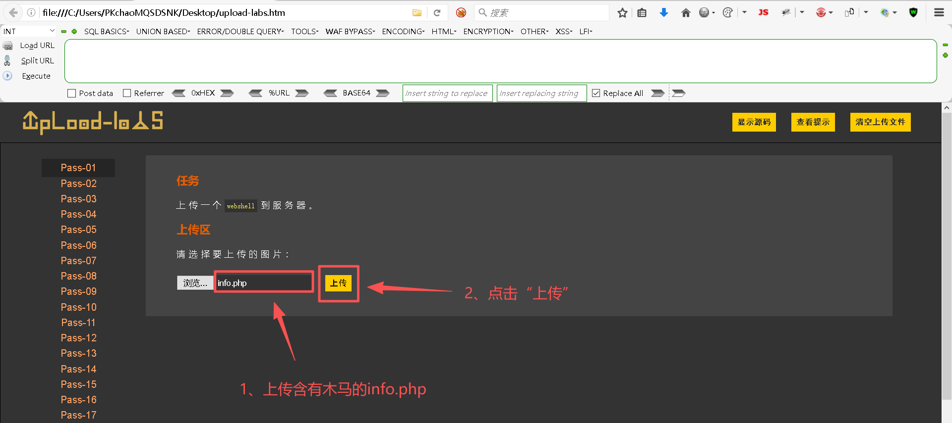 - [2、Pass-01 (JS绕过)](#2、Pass-01 (JS绕过))