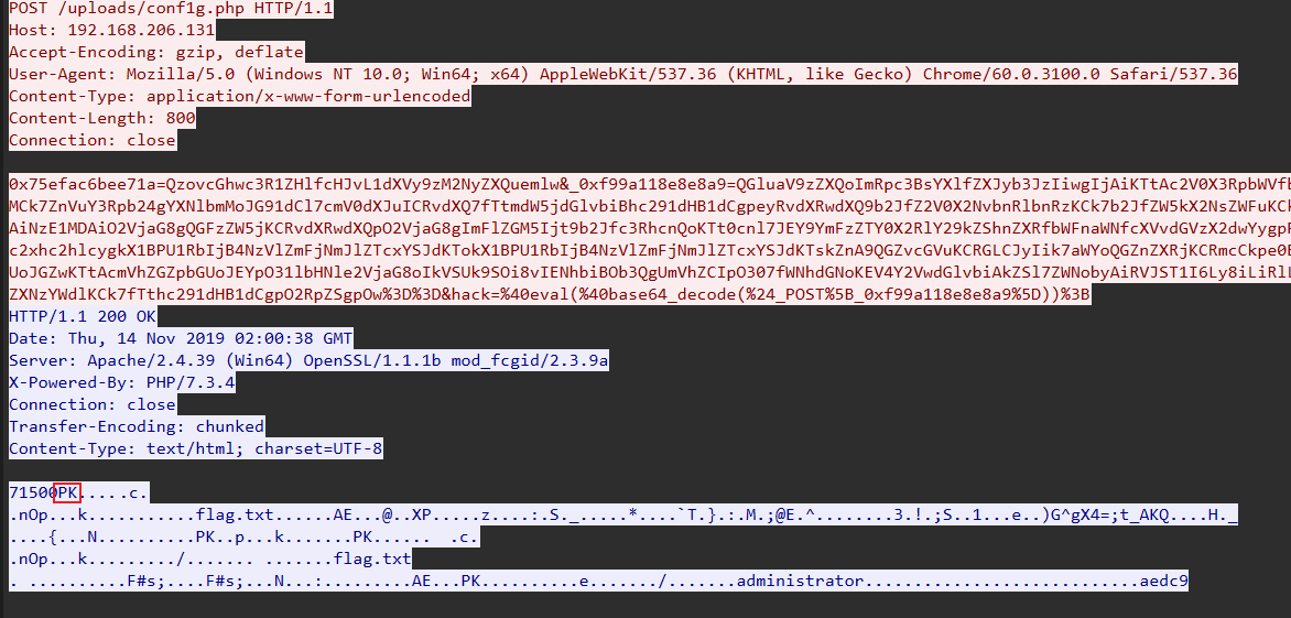 用wireshark打开,搜索flag,发现PK开头,PK开头为zip压缩包。