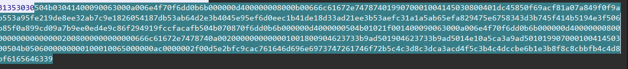导出,先给为原始数据显示,然后找到504B0304,将这及之后的所有16进制复制到记事本,然后导入到010中保存为zip。