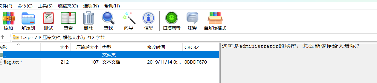 发现需要密码,用winrar打开发现提示,要得到administrator的密码。