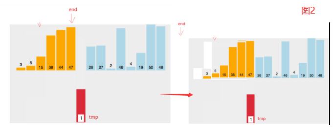//[0, end]有序,end+1位置的值插入[0, end],保持有序