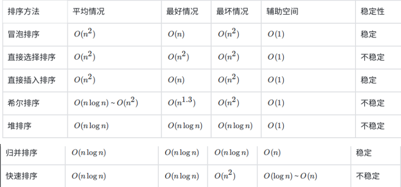 2.6 排序算法复杂度及稳定性分析