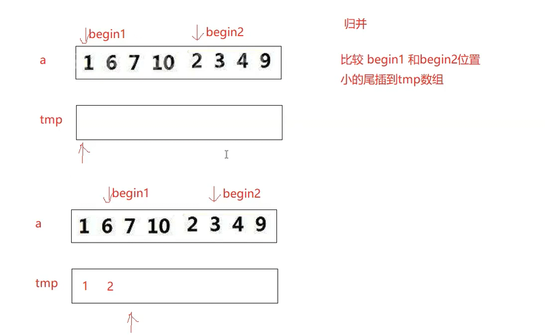 tmp[j++] = a[begin2++];