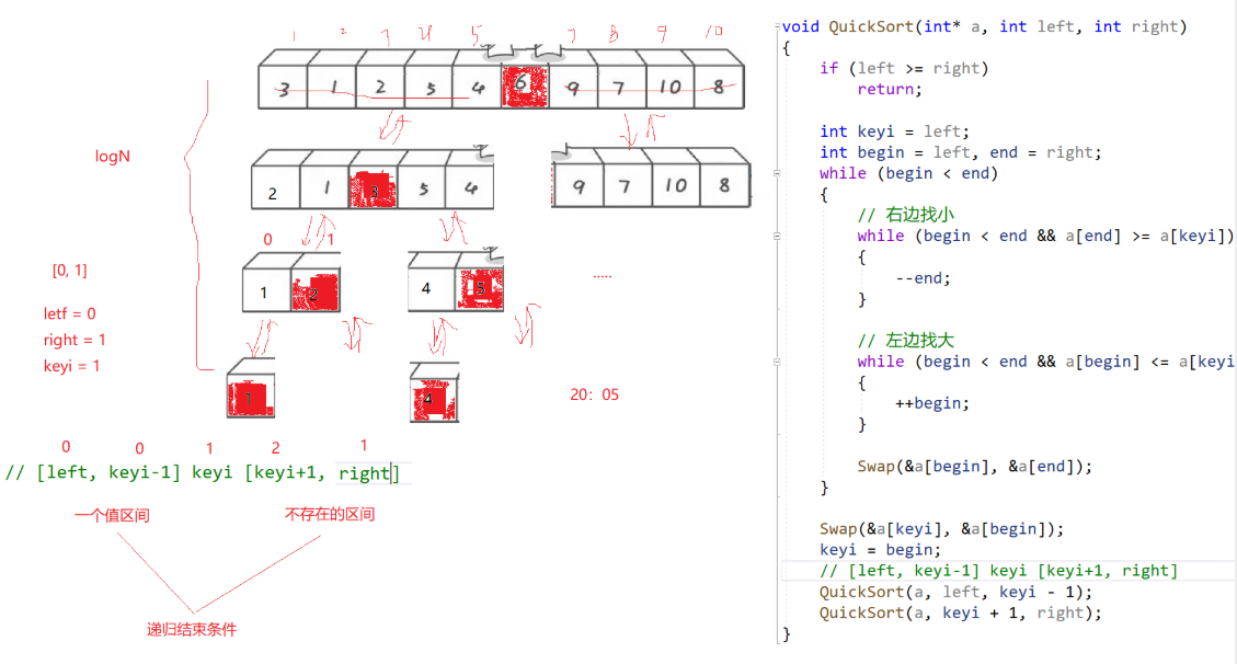 int keyi = _QuickSort2(a, begin, end);