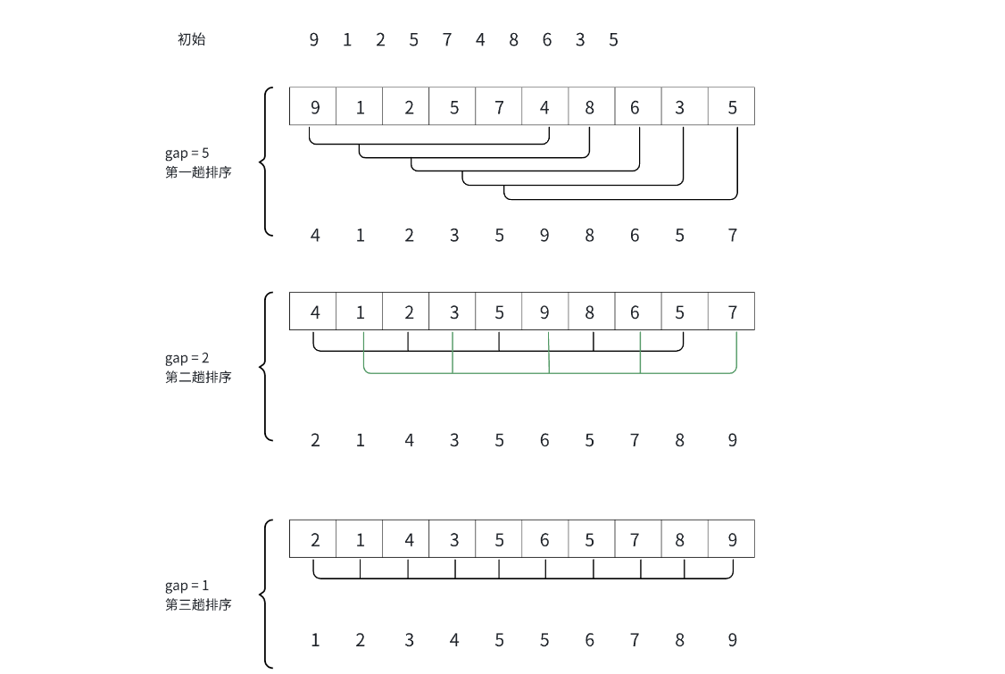 - 当 gap > 1 时都是预排序,⽬的是让数组更接近于有序。当 gap == 1 时,数组已经接近有序 的了,这样就会很快。这样整体而言,可以达到优化的效果