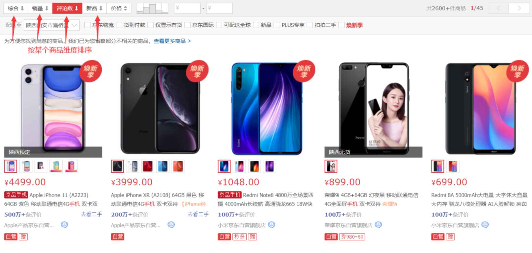购物筛选排序