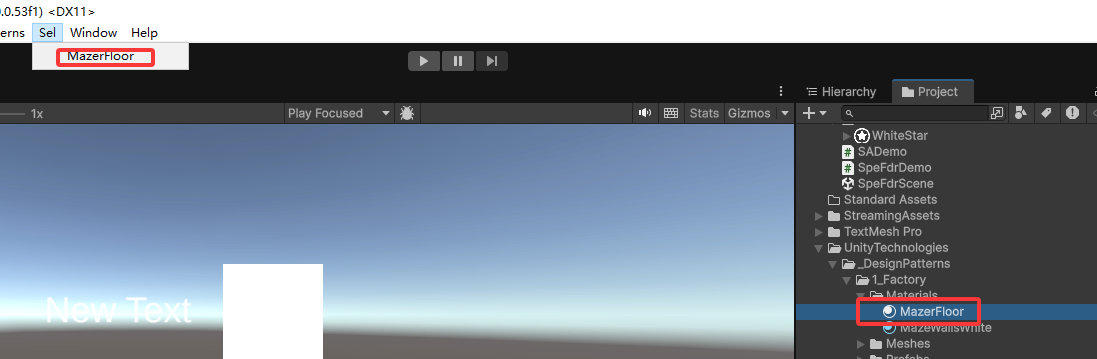 Selection.activeObject = AssetDatabase.LoadMainAssetAtPath("Assets/UnityTechnologies/_DesignPatterns/1_Factory/Materials/MazerFloor.mat");