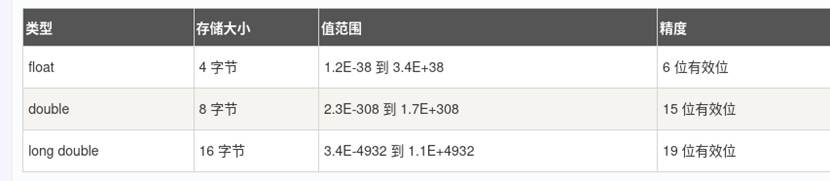 long double:扩展精度浮点型,精度和大小因编译器和系统而异。