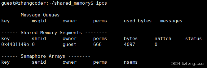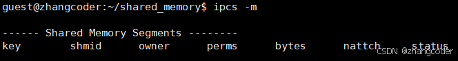 shm1.out崩溃后,Ctrl+C退出shm2.out后,查看共享内存: