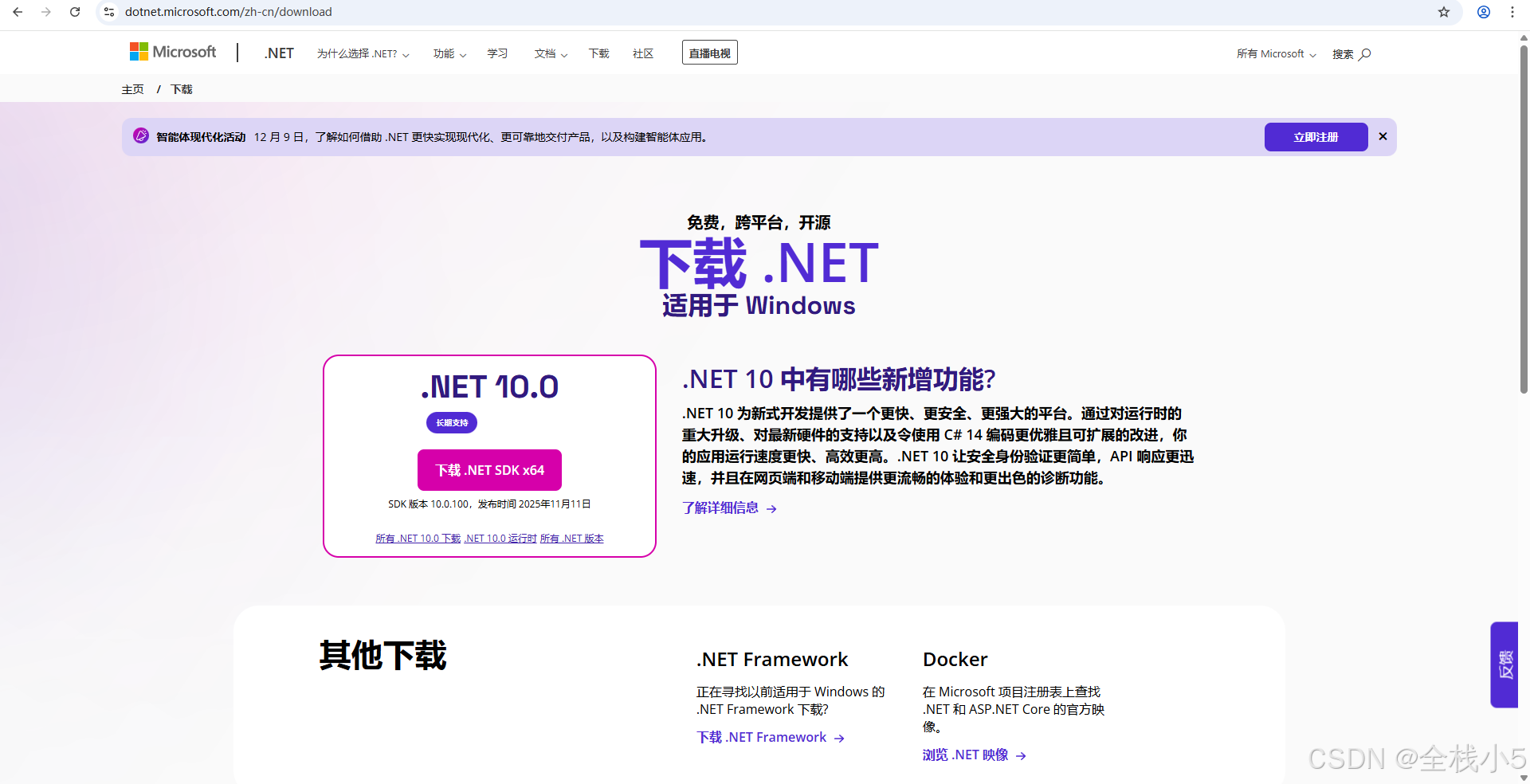 地址:https://dotnet.microsoft.com/zh-cn/download/dotnet