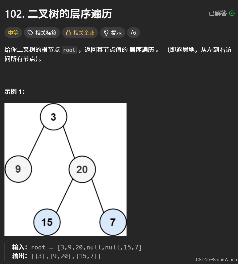 https://leetcode.cn/problems/binary-tree-level-order-traversal/description/依旧是建议大家先去自己动手练习练习哦。