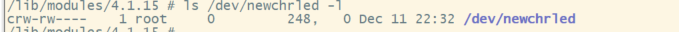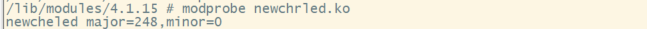 目录中,重启开发板,进入到目录 lib/modules/4.1.15 中,输入如下命令加载 newchrled.ko 驱动