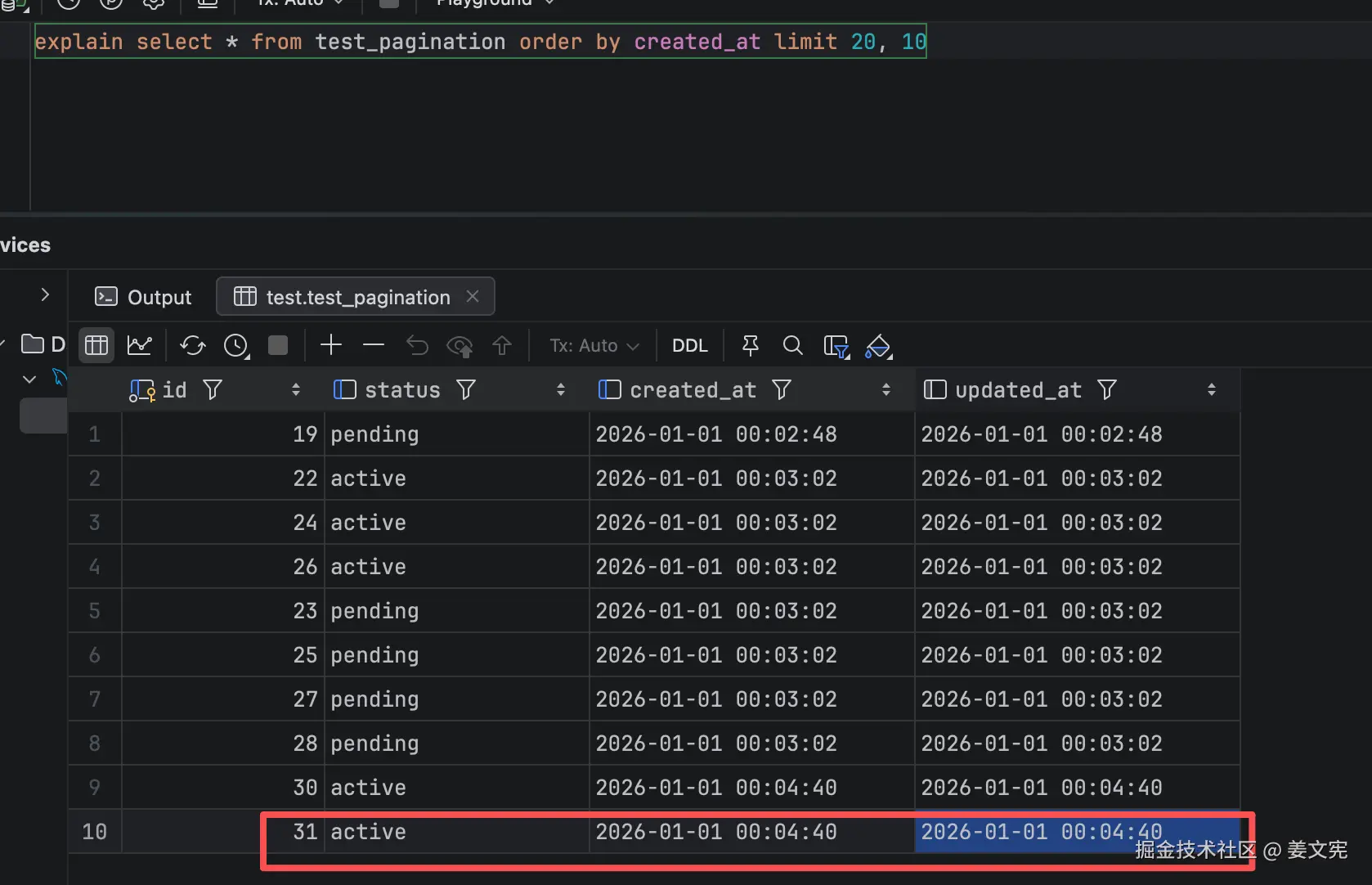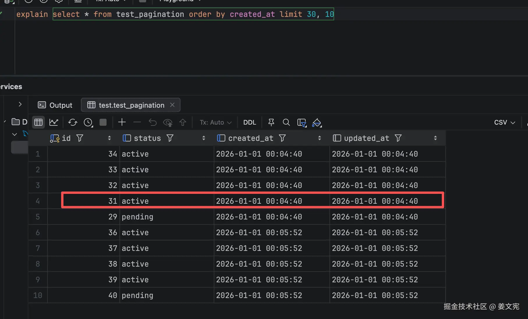 mysqlselect * from test_pagination order by created_at limit 30, 10
