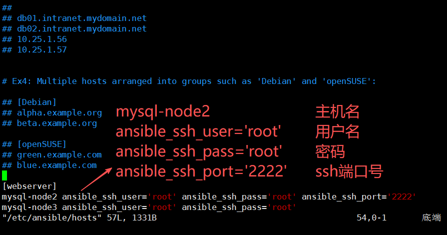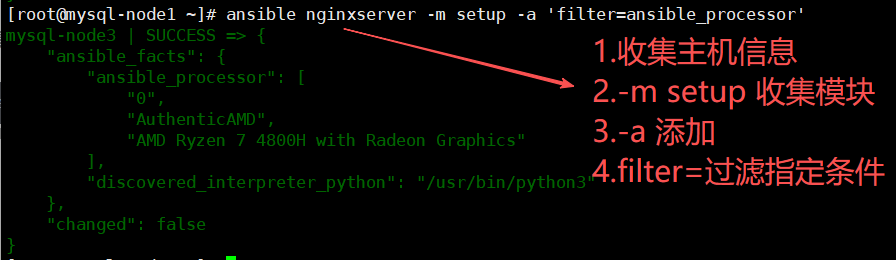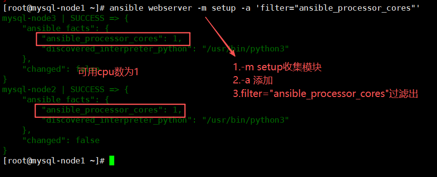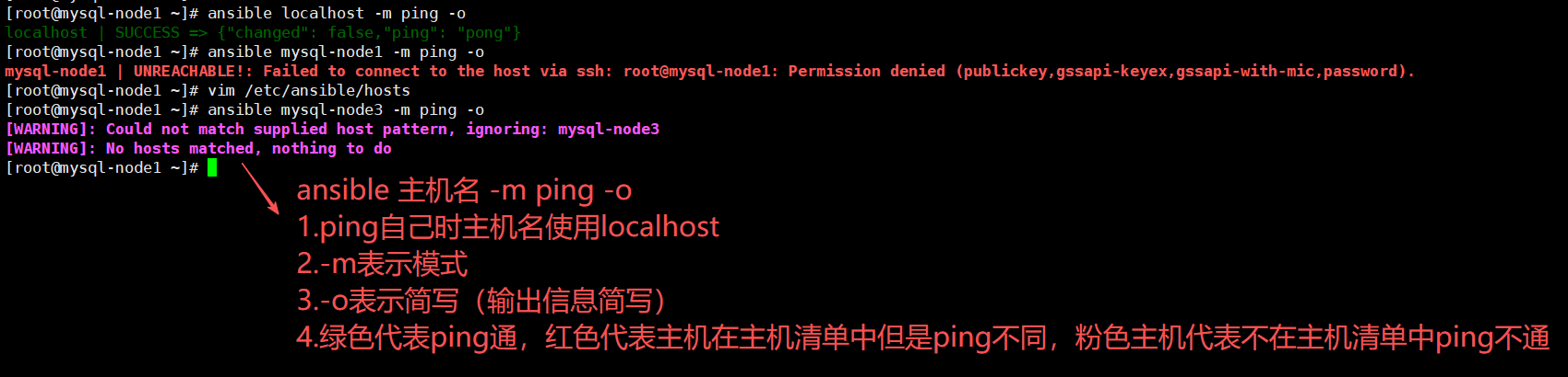 2.[root@mysql-node1 ~]# ansible 目标主机 -m ping -o -u 目标主机用户名 -k