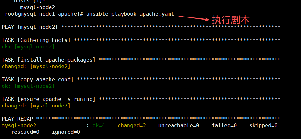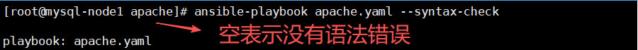 ansible-playbook apache.yaml --syntax-check -检查剧本语法