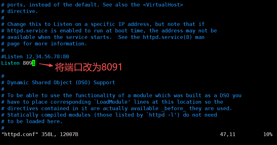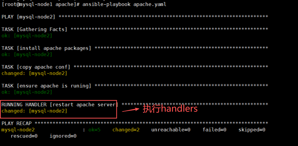 示例:改变http配置文件端口(但是剧本没有重启服务任务,只要加入handlers命令,当检测到配置文件被修改时就执行handlers重启httpd服务)