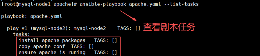 ansible-playbook apache.yaml --list-tasks -检查剧本任务